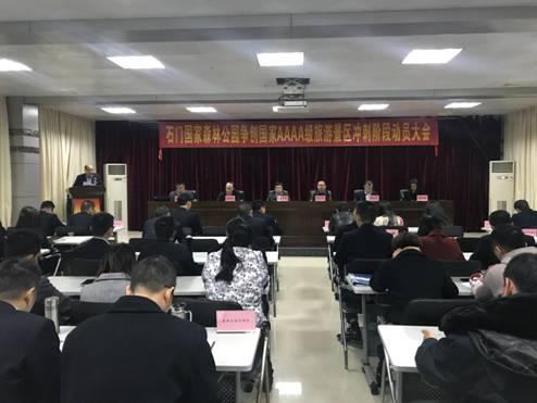 会上,管理处负责人对冲刺阶段的创建工作进行了全面动员,各部门向单位递交了创建《责任书》,创建办负责人做了表态发言。市、区旅游部门相关领导对石门创建4A工作的各项举措和取得的成效给予了充分肯定,简要分析了4A级景区创建的重要性和面临的形势,并对石门创建工作寄于厚望,也表示全力支持石门创建工作。詹宇扬副局长在讲话中充分肯定了石门公园通过创建工作取得的阶段性成果,他指出,创建4A级景区是同步提升公园硬实力和软实力的有效手段,更是“打造世界一流森林公园”目标的重要举措。 同时对石门下一步工作提出具体要求:一是要抓好项目建设,不断完善功能,提升品质;二是要提升服务品质,树立良好形象;三是要加强沟通协调,确保顺利创建。